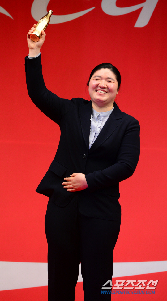 스포츠조선 제정 제20회 코카콜라 체육대상 시상식이 24일 오전 서울 소공로 웨스틴조선호텔 그랜드볼룸에서 열렸다. 1995년 제정된 아마추어 최고, 최대의 시상식인 코카콜라 체육대상은 올해로 20회를 맞는다. 코카콜라체육대상은 전년도 활약을 토대로, 최우수선수상(MVP), 남녀우수선수상, 우수장애인선수상, 우수단체상, 남녀신인상, 우수지도자상, 공로상을 부문별로 선정, 시상한다. 20주년 트로피 세리머니를 선보이고 있는 장미란. 송정헌 기자 songs@sportschosun.com/2015.02.24