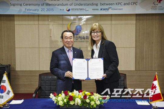 이날 MOU는 한국과 캐나다 양국이 장애인국가대표선수들의 경기력을 향상시켜 2016리우 및 2018평창장애인동계올림픽대회에서 함께 좋은 성적을 거두자는 취지에서 추진됐다. CPC 대표로 참석해 손진호 대장체 사무총장과 환담한 카렌 오닐(Karen O'neill) 사무총장은 캐나다휠체어스포츠협회 사무국장, 캐나다필드하키협회 CEO등을 역임한 전문가다. 패럴림픽 선수 및 지도자, 임원을 위한 스포츠기반을 확립하고 차세대 선수 발굴에 힘쓰며 세계적 수준의 대회를 가능케 하는 패럴림픽 무브먼트에 대한 의견을 주고받았다. 캐나다장애인올림픽위원회가 공식적으로 MOU를 체결한 국가는 한국이 처음이다. 전영지 기자 sky4us@sportschosun.com