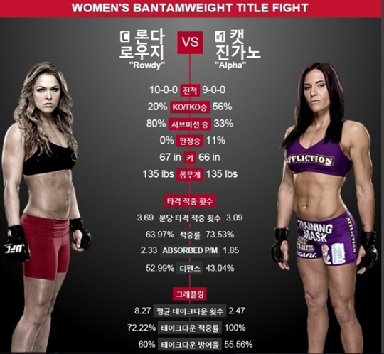 특히 로우지는 UFC 여성부 역사상 최단시간 승리를 거뒀다.