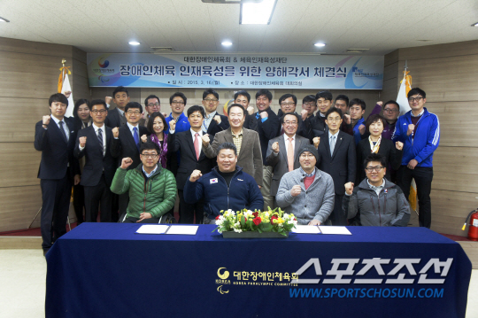 대한장애인체육회와 체육인재육성재단은 장애인체육 교육 관련 사업 상호협력을 위한 업무협약(MOU)을 체결했다.