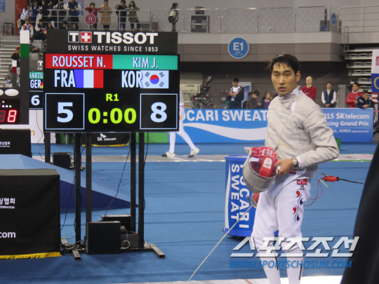 '남자사브르 맏형' 김정환(32·국민체육진흥공단)은 29일 오후 서울 송파구 올림픽공원 내 SK핸드볼경기장에서 펼쳐진 SK텔레콤 펜싱그랑프리 8강에서 프랑스 에이스 니콜라 루세에게 12대15로 석패했다. 구본길 오은석 원우영 오상욱 등 든든한 후배들이 줄줄이 고배를 마신 상황, 김정환은 남녀 대표팀을 통틀어 유일하게 8강에 올랐다. 어깨가 무거웠다. 안방에서 열린 사브르 그랑프리 대회에서 기대치는 높았고, 선수들의 부담감은 그만큼 컸다.