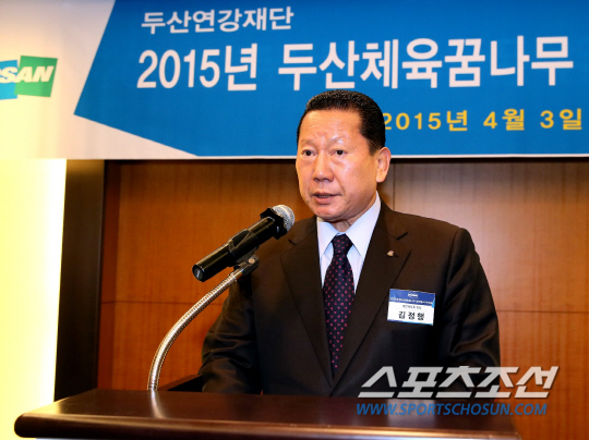 김정행 대한체육회장이 두산 체육 꿈나무 장학증서 수여식에 참석해 체육 꿈나무 선수들을 격려했다.