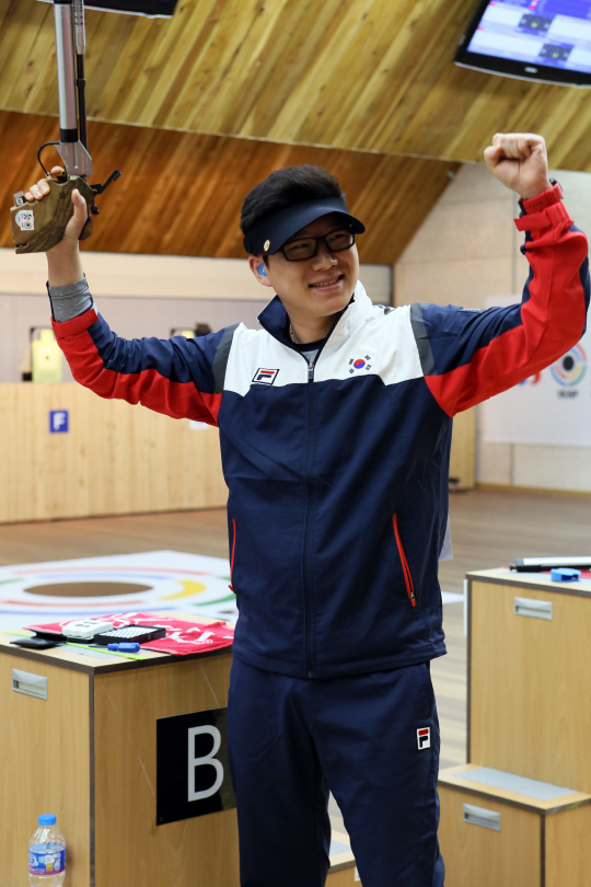 2004년 아테네올림픽 남자 50m 권총 은메달, 2008년 베이징올림픽 50m 권총 금메달-10m 공기권총 은메달, 2012년 런던올림픽 50m-10m 공기권총 금메달. 올림픽 입상기록만 따져봐도 숨이 막힌다. 지난해 스페인 그라나다세계사격선수권대회에서는 50m 권총 본선 최고기록을 34년 만에 갈아치웠고, '올해의 선수'에 선정됐다. 물론 두 종목 세계랭킹 1위다.
