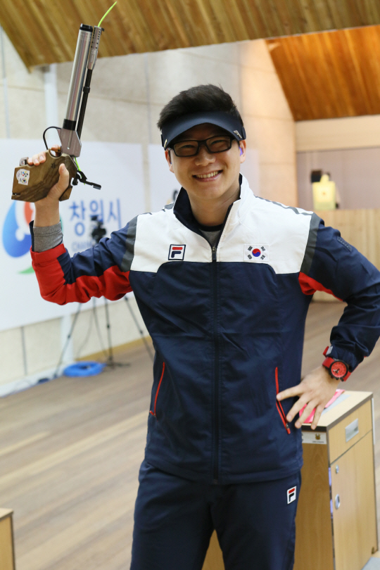 국내에서 열리는 유일한 월드컵 대회인 창원월드컵. 팬들의 응원은 고맙지만 한편으로는 부담이 크다고 했다. 진종오는 "경기 전에 준비를 해야하는 데 사인을 요청하는 분들이 많다. 끝난 뒤에 해드리겠다고 하는데도 '사인하는데 얼마나 시간이 걸린다고 그러느냐'고 하는 분들이 많다"며 웃었다. 경기 중에 관중석에서 나오는 박수소리가 신경쓰일 때도 많다.