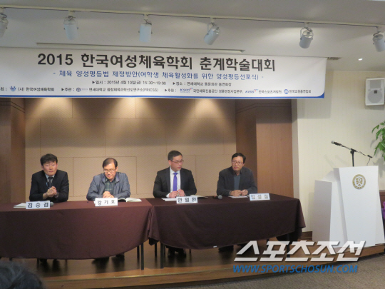 지난 10일 오후 서울 연세대 동문회관에서 열린 한국여성체육학회 춘계학술대회, '여학생 체육 활성화'를 위해 내로라하는 여성 체육학자들이 한자리에 집결했다. 본격적인 세미나에 앞서 '여학생 체육 활성화를 위한 양성평등 선포식'이 열렸다. 학교 현장, 남녀 체육 교육의 평등을 위한 '체육 양성평등법' 제정을 화두 삼았다. 원영신 한국여성체육학회장의 선창에 여성 체육인들이 씩씩한 목소리로 화답했다. "우리는 체육전문가로서 여학생 및 여성의 다양한 체육활동 참여 및 사회 진출 촉진을 위해 체육 양성평등법 제정에 적극 동참한다." 여성 대통령 시대, '여학생 체육'의 주체인 여성 체육 리더들이 목소리를 내기 시작했다.