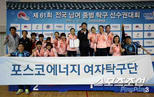 13일, 전북 전주화산체육관에서 막을 내린 제61회 전국종별탁구선수권 여자일반부 단체전 결승에서 포스코에너지가 최종스코어 3대1로 삼성생명을 꺾고 우승컵을 들어올렸다.