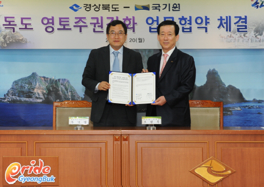 국기원(원장 정만순)은 광복 70주년을 맞아 경상북도(도지사 김관용)와 광복절 기념으로 대한민국 독도의 영토주권 부각 및 홍보를 위한 업무협약을 체결했다.