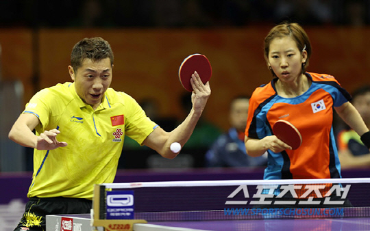 '한중 연합' 양하은-쉬신조가 쑤저우세계탁구선수권 혼합복식 금메달을 목에 걸었다.양하은-쉬신조는 1일 밤(이하 한국시각) 중국 쑤저우 인터내셔널 엑스포센터에서 펼쳐진 쑤저우세계선수권 혼합복식 결승전에서 일본의 요시무라 마하루-이시카와 카스미조를 4대0(11-7, 11-8, 11-5, 11-9)으로 꺾고, 꿈의 금메달을 목에 걸었다. 요시무라-이시카와조는. 16강전부터 준결승까지 이상수-박영숙(한국), 박신혁-김혜성(북한), '디펜딩 챔피언' 김혁봉-김정(북한)조를 차례로 꺾고 결승에 올랐다. 왼손 에이스 쉬신은 전날 경기중 왼쪽 어깨를 다쳤다. 이날 단식 16강전에서 어깨 통증으로 인해 후배 황보에게 풀세트 접전끝에 패했다. 부상에도 개의치 않았다. 혼합복식 금메달에 사활을 걸었다. 1세트, 쉬신의 불꽃 드라이브가 잇달아 작렬했다. 11-7로 기선을 제압했다. 2세트 일본조의 반격이 거셌다. 7-7 상황에서 쉬신이 또다시 해결사로 나섰다. 연거푸 2개의 공격을 성공시켰다. 양하은의 날카로운 드라이브를 요시무라가 받아내지 못했다. 11-8로 2세트도 가져왔다. 4-3, 한포인트를 앞서던 상황에서 양하은이 찬스볼을 놓치지 않고 내리꽂았다. 양하은의 공격에 요시무라의 공이 높이 떴다. 이어진 쉬신의 공격에 이시카와가 속수무책 손을 쓰지 못했다. 순식간에 7-3으로 점수가 벌어졌다. 11-5로 승리했다. 4세트 쉬신의 드라이브, 리시브는 완벽했다. 모든 공을 받아치고, 모든 공을 받아냈다. 마지막세트를 11-6으로 따냈다. 4대0 완벽한 승리였다. 쉬신과 양하은이 따뜻하게 포옹했다.