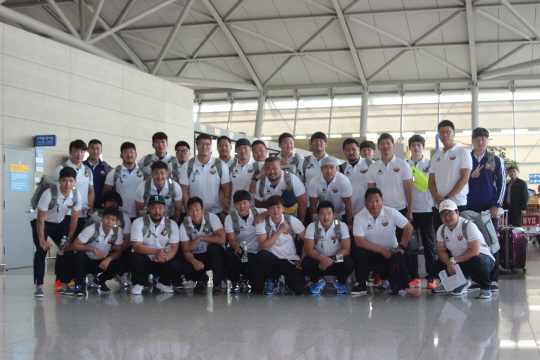 한국 럭비국가대표팀이 2015년 아시아럭비챔피언십 세 번째 경기인 일본과의 원정경기를 위해 7일 출국했다.