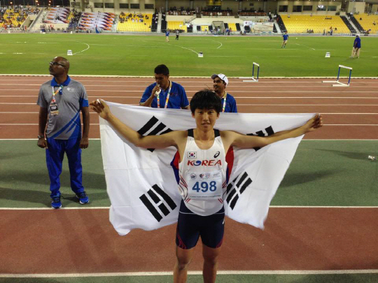 김영빈(이리공고)이 아시아청소년육상선수권대회에서 남자 멀리뛰기 금메달을 따냈다.