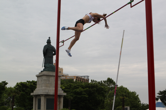국가대표 최예은(21·익산시청)이 23일 부산용두산공원 특설경기장에서 열린 2015 부산국제장대높이뛰기대회에서 4m20을 날아 오르며 여자부 정상에 올랐다.