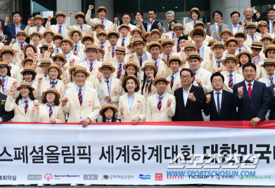 13일 오후 서울 여의도 국회의원회관 대회의실에서 '세계 지적 장애인들의 스포츠 축제' LA스페셜올림픽 세계하계대회 한국대표단 출정식이 열렸다. 이날 출정식에는 131명의 선수단 전원과 나경원 스페셜올림픽코리아 회장(새누리당 의원), 김성일 대한장애인체육회장, 박기종 선수단장, 김재경 국회예산결산특별위원장외 10여 명의 국회의원 및 가족, 관계자들이 결집해, 대한민국의 선전을 기원했다.
