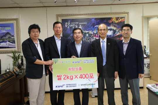 국민체육진흥공단 경륜경정사업본부는 지난 9일 경기도 광명시청에서 지역사회 소외계층을 위한 '사랑의 쌀'을 광명시 사회복지협의회에 전달했다. 양기대 광명시장과 서일동 광명시사회복지협의회 회장, 김성택 경륜경정사업본부 홍보마케팅실장 및 관계자들이 참가한 이번 행사에서 경륜-경정 측은 직원 성금으로 메르스 최대 피해 지역인 평택시 농가로 부터 구입한 400만원 상당의 쌀을 광명시 저소득 및 노인들에게 지원하기로 했다.