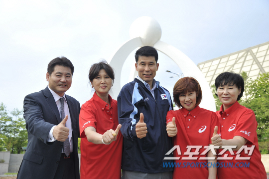 대한민국국가대표선수회가 2015년 스포츠교실 개최를 알리는 기념 촬영을 하고 있다. 첫째 줄 왼쪽부터 박종훈(유도), 박정림(핸드볼), 손경원(농구), 오성옥(핸드볼), 홍차옥(탁구), 김광선(복싱), 둘째 줄 왼쪽부터 양종옥(유도), 한현숙(핸드볼), 유남규(탁구), 이경근(유도), 이영선(육상), 셋째 줄 왼쪽부터 이은철(사격), 김원기(레슬링), 정국현(태권도), 임오경(핸드볼), 김창원(대한민국국가대표선수회 상임위원단 회장), 장윤창(배구). 사진제공=에머슨 케이 파트너스