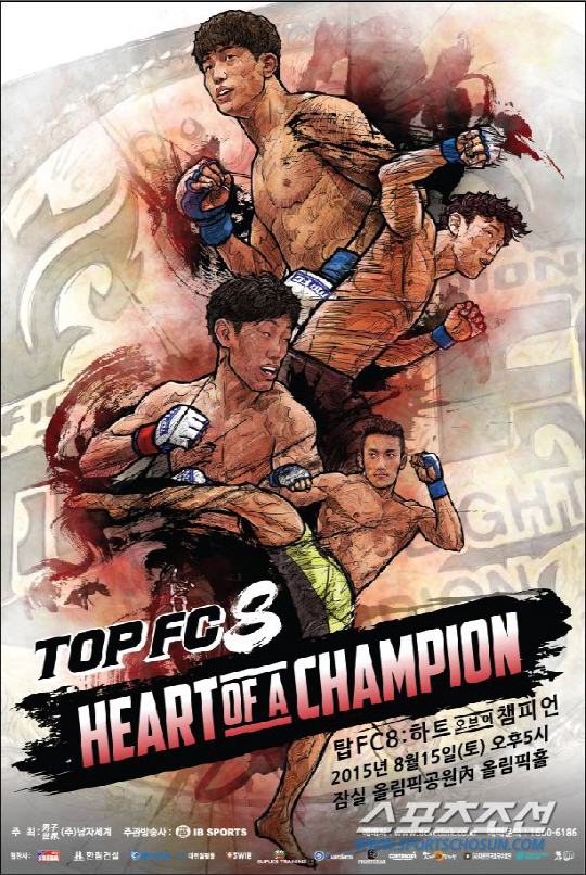 TOP FC8'하트오브어챔피언'은 IPTV IB스포츠를 통해서 생중계될 예정이다. 몬스터짐, 아프리카TV로도 시청할 수 있다.
