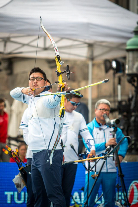 2015년 코펜하겐 세계양궁선수권대회 리커브 개인전에서 4년 만에 다시 정상에 선 김우진. 사진출처=세계양궁연맹페이스북