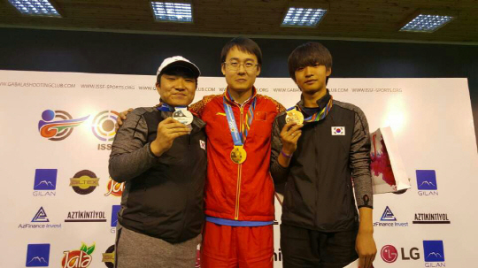 남자 권총의 차세대 에이스 박대훈(동명대 2년)과 김청용(흥덕고 3년)이 11일(한국시각) 아제르바이잔에서 열린 2015년 ISSF(국제사격연맹) 가발라월드컵사격대회 50m 남자 권총에서 나란히 시상대에 올랐다.