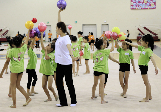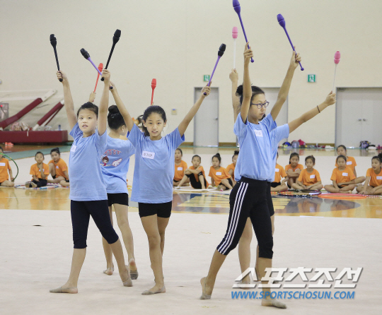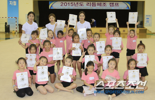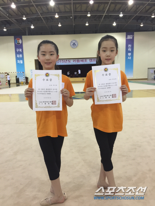 취미로 시작한 리듬체조의 매력에 푹 빠진 모습이었다. 자매가 나란히 캠프에 참가한 경우도 제법 있었다. 김라원 코치의 지도를 받고 있는 장윤서(9·용인 새빛초)-예서(7) 자매는 신나는 음악에 맞춰 춤추기를 좋아하는 언니가 리듬체조를 배우게 되면서 동생도 언니의 길을 따르게 된 경우다. "몸도 유연해지고, 안짱걸음이 고쳐졌다. 다리에 근육이 생겨서 아빠가 더 좋아하신다"며 웃었다."국가대표였던 김라원 선생님처럼 태극마크를 다는 것, 더 열심히 배워서 손연재 언니의 뒤를 잇는 것이 꿈"이라며 눈을 빛냈다. 초등학교 3학년 '쌍둥이 자매' 박민경, 유경양(10)은 "1학년때 몸이 약해서 리듬체조를 시작했는데 줄 종목과 아크로바틱이 정말 재밌었다. 예쁘게 꾸미는 것도 좋고, 리듬체조를 할 때 제일 행복하다"고 입을 모았다. "손연재 언니와 알렉산드라 솔다토바를 좋아한다"고했다. 수료증을 들고 함박웃음을 지었다.