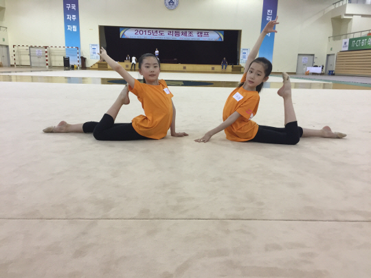 함께 리듬체조 캠프에 참가한 장윤서(9·용인 새빛초)-예서(7) 자매