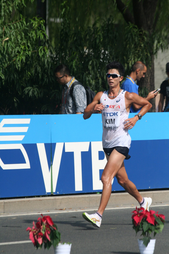 한국 남자 경보의 간판스타 김현섭(30)이 한국 육상 사상 최초로 세계선수권대회 3회 연속 톱10에 진입했다.