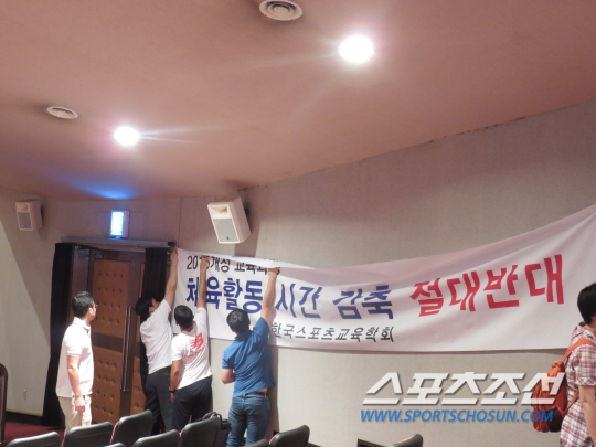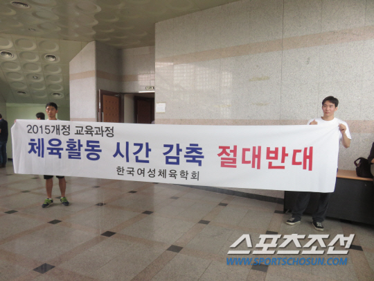 공청회 현장의 반발은 거셌다. 한국체육학회 및 16개 분과학회, 21개 체육 및 스포츠단체연합은 현장에서 성명서를 배포했다. '박근혜 대통령께서 공약으로 발표한 학교체육 및 학교 스포츠 활동 활성화 정책을 적극 추진하라' '학교 체육 및 스포츠활동 활성화를 저해하려는 정책을 즉시 중단하라''스포츠가 대한민국 미래의 발전에 근간이 됨을 인식하고 체육교육 강화와 활성화에 힘쓰라'는 주장을 담았다. 여성체육학회, 한국스포츠교육학회 등은 '체육시간 감축 반대' 플래카드를 곳곳에 내걸고 시위를 펼쳤다. 공청회서 학교체육 축소 배경을 묻는 질문도 쏟아졌다. 이현진 대한체육회 학교체육 담당 부장은 "국토도 좁고, 천연자원도 부족한 우리나라의 경쟁력은 교육에서 나온다. 런던올림픽에서 28개의 메달을 따낸 힘, 세계를 호령하는 스포츠 코리아의 힘은 '학교체육'이 근간이 된 것"이라며 목소리를 높였다. "교육부가 매년 시행하는 학교 스포츠클럽대회는 매년 20% 이상 성장하고 있다. 교육과정에서 체육이 축소되면 스포츠클럽 대회도 위축된다. 자라나는 학생들에게 건강하고 창의적인 교육환경을 제공하자는 취지와도 어긋난다"며 강력한 반대 의사를 표했다.