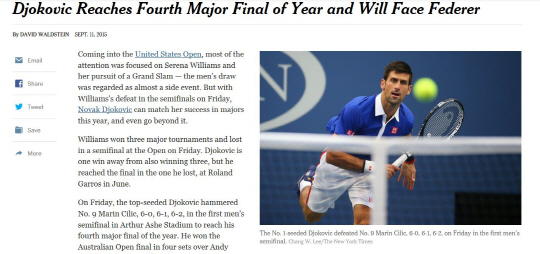 조코비치는 12일(한국시각) 미국 뉴욕 빌리진 킹 내셔널 테니스센터에서 벌어진 남자단식 4강전에서 지난해 이 대회 우승자 마린 칠리치(9위·크로아티아)를 3대0(6-0, 6-1, 6-2)으로 완파했다.