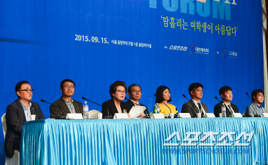 스포츠조선 여학생 체육 활성화-RUN&LEARN' 포럼(스포츠조선-대한체육회 주최, 교육부 후원)이 15일 서울 방이동 올림픽파크텔에서 열렸다. 패널들이 발언을 하고 있다. 정재근 기자 cjg@sportschosun.com/2015.09.15/