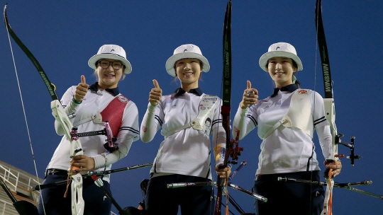 기보배(광주광역시청)와 강채영(경희대), 최미선(광주여자대학교)으로 구성된 한국은 중국을 세트승점 6(55,57,56)대 0(54,55,53)으로 제압하고 결승전에 진출했다. 한국은 우크라이나와 벌인 결승전에서 세트승점 6(59,56,55)대 0(52,54,50) 완승을 거뒀다. 여자대표팀은 본선 경기에서 상대팀에 단 1세트도 내주지 않고 완벽한 모습으로 우승했다. 민창기 기자 huelva@sportschosun.com