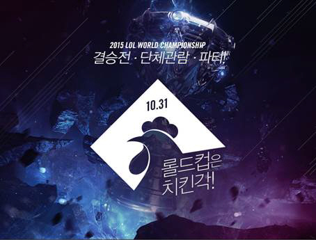 [스포츠조선닷컴 김영록 기자] '리그 오브 레전드(이하 LoL)'의 개발 및 유통사 라이엇 게임즈가 '2015시즌 LoL 월드 챔피언십 (이하 롤드컵)' 결승전을 맞아 단체관람 이벤트 '치킨파티'를 진행한다.