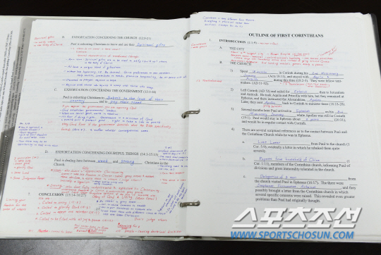 김소영 한국척수장애인협회 척수장애인재활지원센터장의 대학시절 노트. 한치 흔들림없는 단아한 필체에는 혼신의 노력이 깃들었다. 여의도 이룸센터=정재근 기자 cjg@sportschosun.com/2015.10.21/