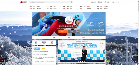 2018년 평창동계올림픽 및 장애인동계올림픽대회 조직위원회는 3일 "13억 중국인들을 대상으로 2018 평창 동계올림픽을 홍보하기 위해 개설한 '웨이보(Weibo)'가 운영 2주 만에 3만명에 육박하는 회원 수를 기록했다"고 밝혔다. 또 웨이보를 지원하기 위한 영상 채널인 '유쿠(Youku)' 역시 15만건 이상의 회원 수를 기록하는 등 중국내 평창 동계올림픽에 대한 SNS 홍보가 성과를 보이고 있다.