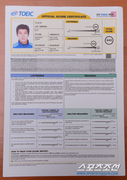 5개월의 방황 끝 축구를 내려놓고서야, 마음을 잡을 수 있었다. '운동할 때처럼 밤낮없이 죽어라 하는 마음으로 한다면 뭐든 할 수 있다.' 독한 다짐과 함께 2012년 11월 종로의 영어학원, 왕초보 문법반에 등록했다. 매일 저녁 7~10시까지 토플 기초반부터 중급반을 섭렵했다. 지하철을 오가며 단어를 외우고, 공익근무 짬짬이 예복습을 했다. 스승들의 조언에 따라 '토익점수 900점 이상'의 목표도 세웠다. 6시에 퇴근해 밤 11시까지 한달간 토익 독해, 리스닝 문제집을 풀고 또 풀었다. 첫 시험에서 830점을 받았다. 또다시 한달을 죽기살기로 덤볐다. "그렇게 좋아하는 축구를 포기하고 공부를 하는데 이정도도 못할까. 인생을 걸었던 꿈, 내 인생에서 제일 소중한 것과 바꾼 것인데 대충하면 축구를 포기한 가치가 퇴색되는 것이라고 생각했다." 이 악문 노력은 통했다. 목표했던 '945점'을 받아들었다.