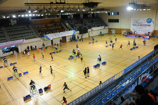 '2015 눈높이 제4회 한국교총회장배 전국교원배드민턴대회'가 14일 대전 한밭체육관에서 성황리에 개최됐다.