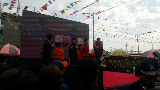 두 번째, 환영받으며 축구를 할 수 있다. 부산이 37라운드를 구덕운동장에서 치르기로 하자 관할 서구청과 지역 상권이 두 손 들어 환영하고 있다. 서구청은 경기 안내 플래카드는 물론 모든 홍보 활동을 전폭적으로 지원하고 있다. 37라운드 경기에 체험봉사 학생 500명을 지원하는가 하면 지역 체육단체 회원들의 참여를 독려하고 있다. 아시아드주경기장 주변에서 경기 안내 플래카드를 잘 못 붙였다가 과태료를 물기 십상인 것과 대조적이다. 기초자치단체의 반응이 크게 다른 것이다. 여기에 주변 영세 상인들도 대환영이다. 구덕운동장 주변엔 국제시장, 남포동, 광복동 등 부산의 전통 상권이 있다. 이들 상권은 해운대 등 신흥 상권에 밀려 고전하고 있다. 프로축구가 다시 온다고 하니 상인들이 먼저 나서 대환영 분위기다. 부산이 최근 국제시장에서 선수단 팬사인회를 했을 때도 수많은 지역 상인과 주민들이 모여 부산 구단이 한동안 목격하지 못했던 뜨거운 환대를 보여줬다. 구덕운동장은 지역경제와 구단이 함께 부활할 수 있는 상생의 장이다.