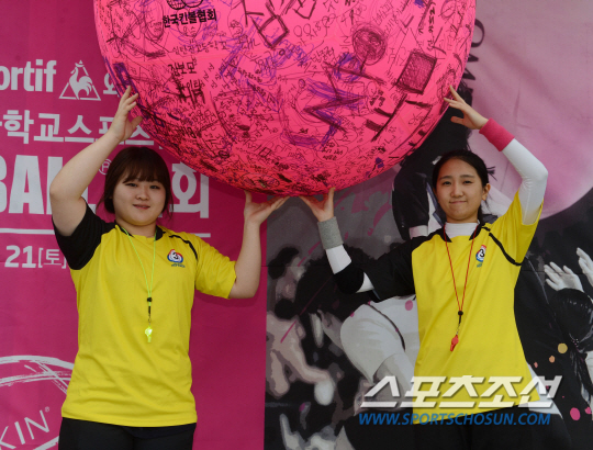 이날 대회 현장에서는 '여성 심판'들도 맹활약했다. 직장인 이혜민씨(22)와 김미래씨(22) 등 '킨볼 국가대표'들이 노란 유니폼을 맞춰입고 '포청천'으로 나섰다. 이들은 장안대학교 12학번 동기로 교내 킨볼 동아리 창단 멤버다. 장안대가 2012년 코리아컵 킨볼대회에서 우승한 이후 킨볼은 '종교'가 됐다. 삶의 궤적이 바뀌었다. 킨볼에 '미친' 여대생들은 2012년 일본에서 열린 아시안컵에 나섰고, 올해는 스페인에서 열린 세계선수권에서 당당히 4위에 올랐다. 첫 세계대회에서 준결승에 진출한 '팀코리아'는 현장에서 최대 이슈였다.