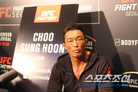 추성훈(14승5패)은 26일 오전 인터컨티넨털 서울 코엑스 호텔에서 열린 UFC 얼티밋 미디어 데이에서 알베르토 미나(11승)와의 승부에 자신감을 드러냈다.'UFC 파이트 나이트 서울' 대회는 28일 오후 6시 서울 올림픽공원 체조경기장에서 펼쳐진다.