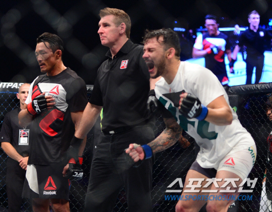 추성훈은 28일 서울 잠실 올림픽공원 체조경기장에서 열린 'UFC 파이트 나이트 서울' 알베르토 미나와의 웰터급 경기에서 1대2로 판정패했다.