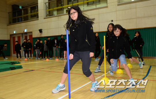 인터뷰가 신기했던지 10여명의 여학생들이 우르르 몰려들었다. 이 여학생들에게 "체육이 좋냐"는 질문을 던졌다. '우문'이었다. "네!"하는 뜨거운 함성이 체육관을 메웠다. "왜?"라는 질문도 우문이었다. "운동이 좋아서요." "체육 활동시간이 더 많았으면 좋겠어요" "일주일에 3번, 아니 5번, 아니 매일매일 체육시간이 있었으면 좋겠어요." 운동을 좋아하는 이유도 너나없이 외쳤다. "운동이 공부보다 재밌어요." "하면 할수록 늘어요." "몸을 움직이는 게 즐거워요." "땀을 흘리고 나면 상쾌해요." 체육을 사랑하는, '하니'같은 여학생들의 씩씩한 활기가 반가웠다.