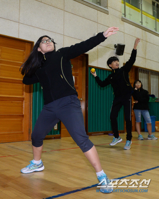 숭덕초등학교 25명의 지원자 가운데 절반 가까운 12명이 여학생이었다. 재미있고 질 높은 육상 수업에 대한 여학생들의 호응은 뜨거웠다. 10회차 수업이 진행된 이날 비가 흩날리는 추운 날씨에도 25명 중 22명이 출석했다. 가벼운 러닝으로 몸을 푼 후 던지기 수업이 시작됐다. '휘리릭' 휘파람 소리를 내며 치솟는 폭탄 모양 교구를 힘껏 던졌다. "위를 보면서 던져!" "희원아, 낮아, 더 높이 던져야 해" 개인별 맞춤형 처방도 주어졌다. 목표는 전날보다 좀 더 높이, 좀 더 멀리 던지는 것이다. "굿! 잘했어. 좋아졌어!" 코치님의 칭찬에 아이들이 생긋 미소지었다.