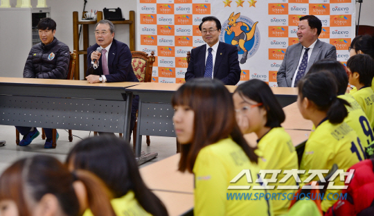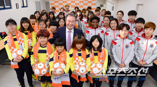 지난 12일 여자축구 이천 대교의 홈구장인 이천종합운동장, 이천 대교 선수들과 이천여자어린이FC가 만났다. 강영중 국민생활체육회장 겸 대교 그룹 회장이 흐뭇한 미소를 띠며 이들의 만남을 바라봤다. 강 회장은 이천 대교의 구단주다. 이천여자어린이FC는 강 회장이 수장인 국민생활체육회가 지원하는 48개 여자어린이축구클럽 중 하나다. 여자축구를 매개로 선수와 어린이들이 마주한 자리, 축구의 매력에 푹 빠진 여자어린이들을 향해 강 회장은 '지소연 이야기'를 꺼냈다. 소녀들이 귀를 쫑긋 세웠다. "지소연 언니는 여러분만 할 때 남자친구들과 같이 공을 찼어요. 여러분도 남자친구들과 '같이' 공을 찼으면 좋겠어요."