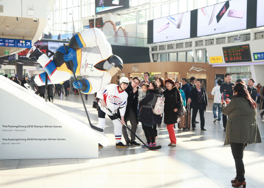 2018년 평창동계올림픽 및 장애인동계올림픽 조직위원회는 8일 서울역에서 평창 동계올림픽대회 종목 중 하나인 아이스하키 홍보 조형물을 설치, 17일까지 열흘 동안 시민들에게 공개하는 이벤트를 진행한다. 아이스하키 선수의 역동적인 동작을 영화 속 슈퍼히어로처럼 표현한 높이 2.8m, 너비 1.2m 규모의 조형물에는 대회 엠블럼과 슬로건, 대회 일자 등이 소개돼 평창 올림픽과 동계스포츠를 알리는데 큰 역할을 할 것으로 조직위는 기대하고 있다. 특히 조형물 공개를 기념해 이날 세 차례에 걸쳐 스노보드 선수 복장과 장비를 착용한 채 공중에 떠 있는 퍼포먼스를 선보여 큰 호응을 얻었다. 조형물은 설치 기간 동안 포토존으로도 활용되면서 인기를 모을 것으로 보인다.