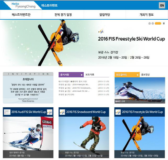 내년 2월 개최 예정인 평창 동계올림픽대회 테스트이벤트 홈페이지가 15일부터 공식 서비스에 들어갔다.