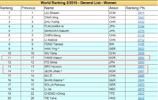 리우올림픽의 해, 여자탁구대표팀 막내 양하은(22·대한항공)이 생애 최고 랭킹 11위를 찍었다.
