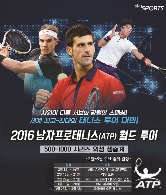 스카이스포츠는 이날 16강전을 시작으로 2016 ATP 월드 투어 500 시리즈, 1000 시리즈의 주요경기를 생중계한다. 특히 스카이스포츠는 한국 테니스의 희망 정현이 출전하는 경기는 대회 준결승전, 결승전에 관계없이 우선적으로 편성할 계획이다.