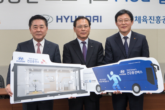 이번 삼자간 협약식은 장시간 운전에 지친 택시기사들의 건강을 수시로 체크하고 개선할 수 있도록 하기 위한 '택시 건강증진 프로젝트'의 성공적 추진을 위함이다. '택시 건강증진 프로젝트'는 LPG충전소에 체성분분석기, 혈압측정기 등을 설치해 택시기사들의 건강을 체크하는 '건강충전소'사업과 현대자동차의 45인승 버스를 개조하여 직접 택시기사 밀집지역을 순회하며 공단의 운동처방 프로그램인 '국민체력 100'을 도입해 전문운동처방을 받는 '건강충전버스'사업으로 이루어져 있다. 국민체육진흥공단은 국민체력 100 센터의 체력측정 노하우와 운동처방 전문성을 제공하고, 현대자동차는 버스 제공과 운영을, SK가스는 장소를 제공하는 등 공공부문과 민간부문과의 협업으로 국민스포츠복지 사업을 본격적으로 시작한다.