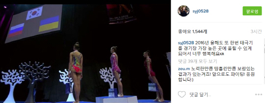 "2016년 올해도 또한번 태극기를 경기장 가장 높은 곳에 올릴 수 있게 돼 행복해요."