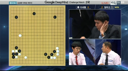 SBS 해설진은 "이렇게 되면 이세돌 9단은 5-0 패배를 예상해야될 상황까지 왔다. 오늘처럼 뒀는데 지면 앞으로 어떻게 둬야할지 모르겠다"라며 "첫 수를 천원에 둬야하나 생각된다"라며 좌절감을 드러냈다.