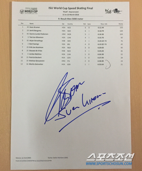 직전 5차대회 스타방에르 대회까지 6번 모두 출전한 팀 동료 베르스마(랭킹포인트 410점)에게 랭킹포인트 30점 차로 뒤진 2위, 랭킹포인트 380점을 기록중이었다. 마지막조인 6조 스타트라인에 선 크라마는 베르스마와 양보없는 한판 승부를 펼쳤다. '괴물'같은 뒷심을 발휘하며 6분11초44, 호기록으로 결승점을 통과했다. 베르스마의 6분12초74보다 1초30이나 앞섰다. 파이널 우승으로 랭킹포인트 150점을 확보한 크라머는 120점을 따낸 2위 베르스마와 총점 530점으로 동점을 이뤘지만, 최종 레이스 승자가 우승한다는 ISU 룰에 따라 극적으로 세계랭킹 1위를 탈환했다.