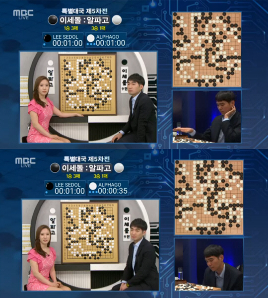 송태곤 해설위원은 "알파고가 엉뚱한 자리는 정리를 해놓으면서 정작 중요한 끝내기를 마쳐놓지 않은 실수들이 있었다"라며 "여기저기 이세돌 9단이 상당히 점수를 벌었다. 큰 급소를 많이 차지했다"라고 말했다.