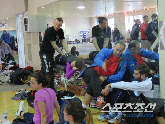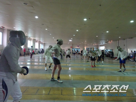 수년째 수많은 국제대회에서 마주해온 각국 코치, 선수들은 이효근 남자 사브르 대표팀 코치와 유상주 여자 사브르 대표팀 코치, 한국 선수들과 스스럼없이 인사를 주고받았다. 선수들은 자유로이 피스트에서 격돌했다.남자 사브르 구본길(세계랭킹 3위), 김정환(세계랭킹 5위) 등 톱랭커들을 향한 러브콜이 폭주했다. 이란, 프랑스 등 각국 선수들이 앞다퉈 '결투(?)'를 신청했다. 구본길은 "상대선수들에게도 도움이 되지만, 우리들로서도 대회를 앞두고 상대 전력을 탐색하는 데 도움이 된다"고 말했다. 김정환은 "물론 전력을 다하지는 않는다. 우리의 핵심 기술을 읽히면 안되기 때문에 훈련에서 서로 모든 것을 보여주지는 않는다. 부상 위험도 있기 때문에 몸을 푸는 식으로 가볍게 뛴다. 아마 상대도 비슷할 것"이라며 웃었다. 다국적 선수들의 맞대결에, 선수들이 직접 심판으로도 나섰다. 여자 사브르 김지연과 최다희가 맞대결을 펼치자, 미국 선수가 심판을 자청했다.